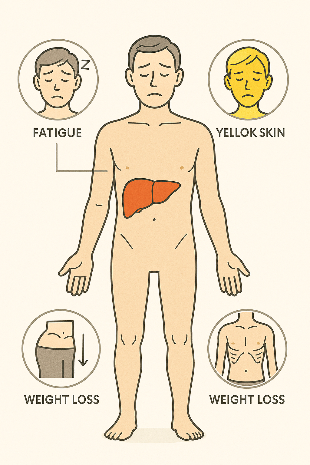 | 식욕 부진 및 체중 감소 | 간이 소화 효소 생산과 영양소 대사를 담당하는 장기이므로 기능 저하 시 식욕이 줄고 체중이 급격히 감소할 수 있습니다. |