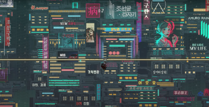 "픽셀 그래픽이 사이버펑크 테마와 완벽하게 어울려."