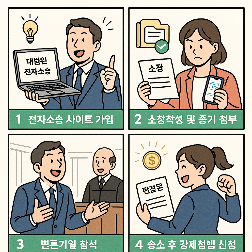 법원에서 실제로 인정하는 증거 기준부터, 소장 작성, 셀프 진행 절차, 승소 후 강제집행까지 전 과정을 중학생도 이해할 수 있게 쉽고 재밌게 풀어드립니다.