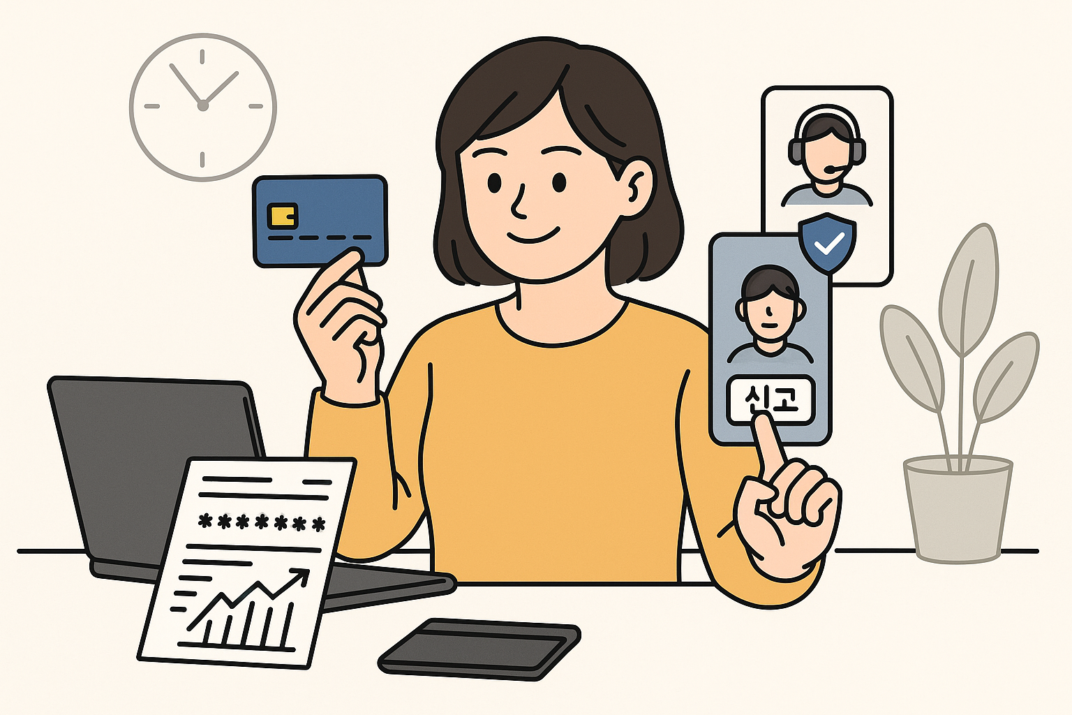 - 카드사 고객센터 신고 후 거래 정지 및 재발급