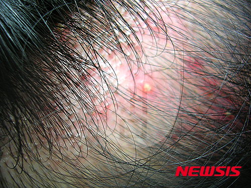 피부 밑에서 염증이 꾹 눌려 있는 상태를 그대로 두면, 모근이 손상되어 머리카락이 빠지는 염증성 탈모로 이어지기 때문이에요.