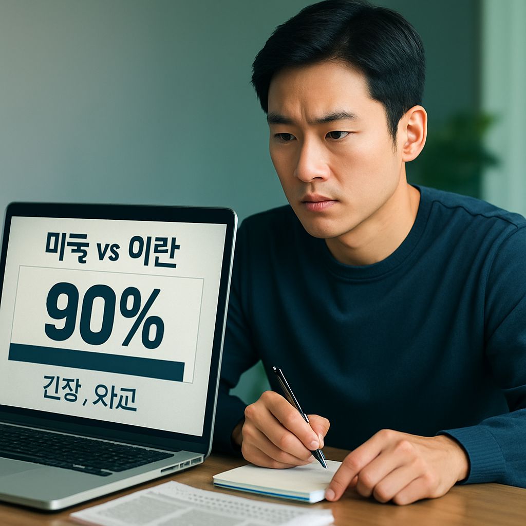 최근 뉴스와 각종 커뮤니티에서는 미국과 이란 사이의 군사적 긴장이 폭발 직전이라는 소문이 퍼지고 있습니다. 특히 일부 매체가 '전쟁 가능성 90%'라는 수치를 언급하면서 불안감이 더욱 커지고 있는데요. 숫자로 표현되는 정보에 익숙하지 않은 독자라면, 이 같은 보도에서 실제 의미를 구분하기가 쉽지 않습니다. 왜 이런 전망이 등장했고, 과연 지금이 실제로 전쟁 직전 상황인 것인지, 최근 기사와 보도 흐름을 토대로 꼼꼼히 짚어보겠습니다.