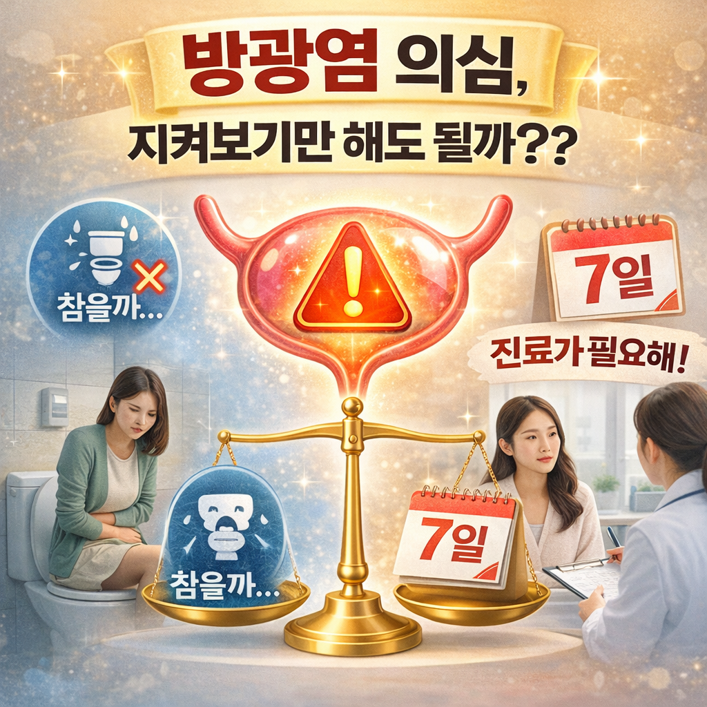 일상생활에서 갑자기 소변을 자주 보고, 잔뇨감까지 느끼게 되면 누구나 방광염을 의심하게 됩니다. 특히 몸이 유난히 피곤하거나 스트레스를 받은 뒤라면 더 불안해지죠. “바쁜데 이번 주말만 쉬면 괜찮아질까?”라고 넘기기엔 자기 판단이 쉽지 않습니다. 단순히 휴식을 취하면 괜찮아지는지, 아니면 꼭 치료를 받아야 하는지 명확한 기준이 필요합니다.