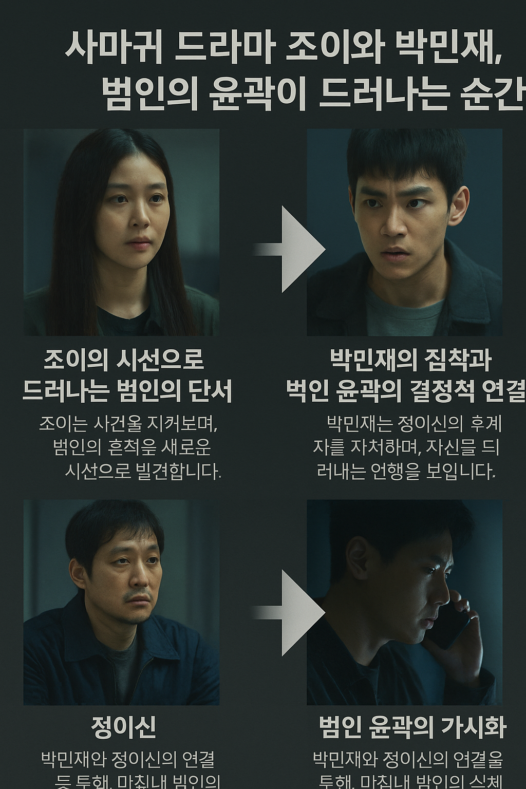 👉 정리하자면, 조이는 사건의 ‘관찰자’이자 ‘해석자’로서, 범인의 윤곽을 드러내는 중요한 시선을 제공합니다. 그녀의 관찰은 시청자가 범인을 이해하는 과정에 깊이를 더해주며, 극의 몰입도를 크게 높여줍니다.