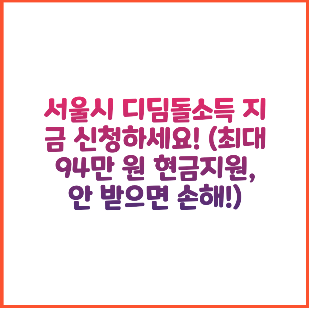 서울시 디딤돌소득 시범사업 신청 자격 방법 청년혜택 최대 94만원 지원금받는 법 서울복지포털 2025