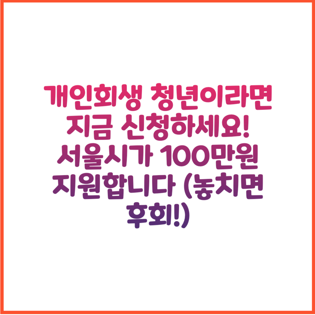 서울시 청년 자립토대 지원사업은 단순한 지원금을 넘어, 경제적 재기의 기반을 다질 수 있는 소중한 기회입니다. 특히 개인회생 이후 경제 재정비가 필요한 청년이라면 지금이 가장 적기입니다. 신청 조건을 꼼꼼히 확인하시고, 준비 서류를 미리 확보하여 접수 마감 전 신청을 완료하시기 바랍니다. 이런 혜택을 놓치지 마시고, 경제적 자립의 첫걸음을 서울시의 지원으로 시작해보시기 바랍니다.