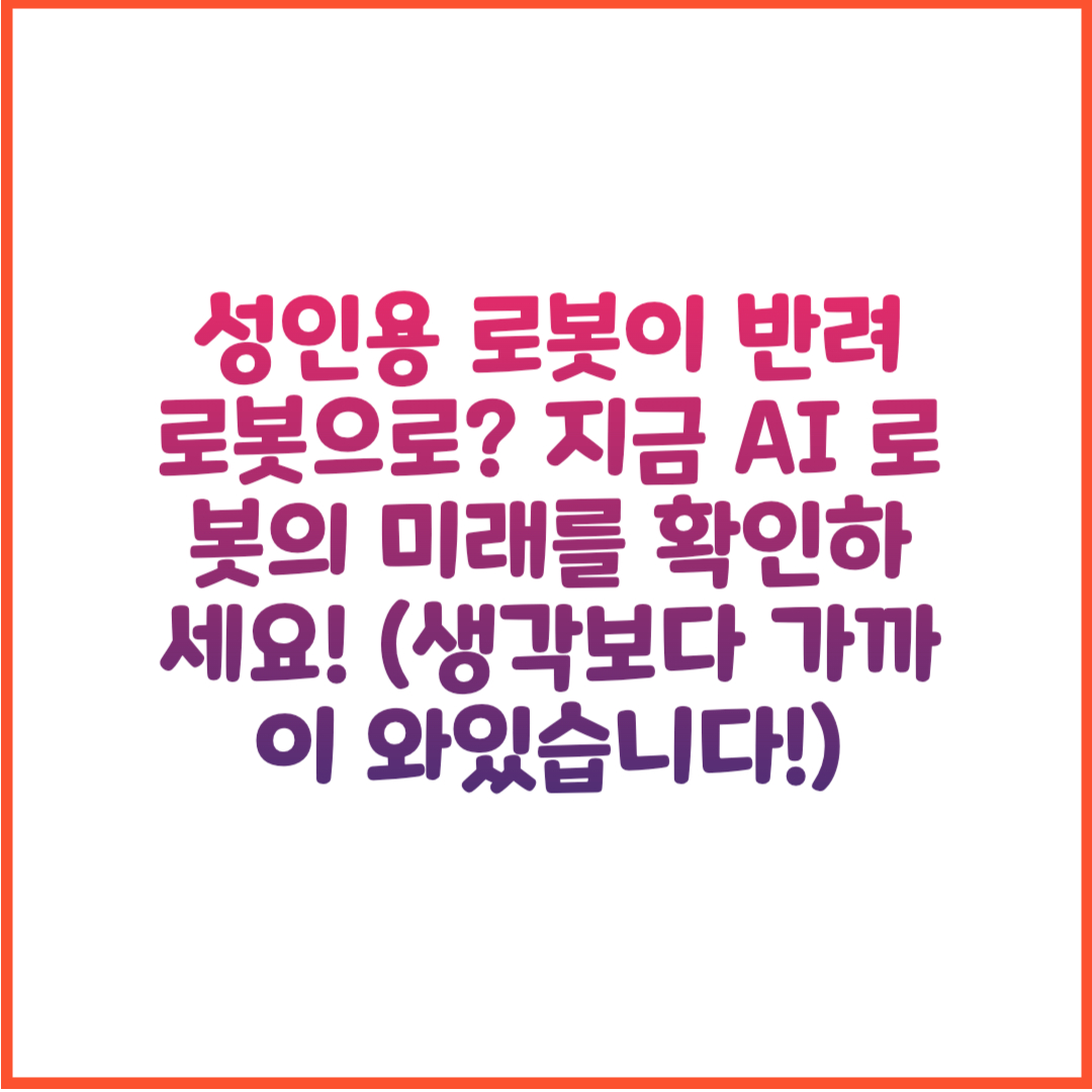 성인용 로봇의 등장은 단순한 제품 출시를 넘어, 인류의 삶에 대한 근본적인 질문을 던지고 있습니다. 우리가 로봇과 친구가 될 수 있을까? 대화하고 감정을 나눌 수 있을까? 지금 이 순간에도 기술은 그 질문에 가까워지고 있습니다. 아직은 낯설고 논쟁적인 주제일 수 있지만, 반려 로봇이라는 새로운 형태의 인간-기계 관계는 분명 미래 사회에서 중요한 자리를 차지하게 될 것입니다. 이 글이 그러한 변화 속에서 여러분의 이해를 돕고, 새로운 시각을 제공하는 계기가 되었기를 바랍니다.