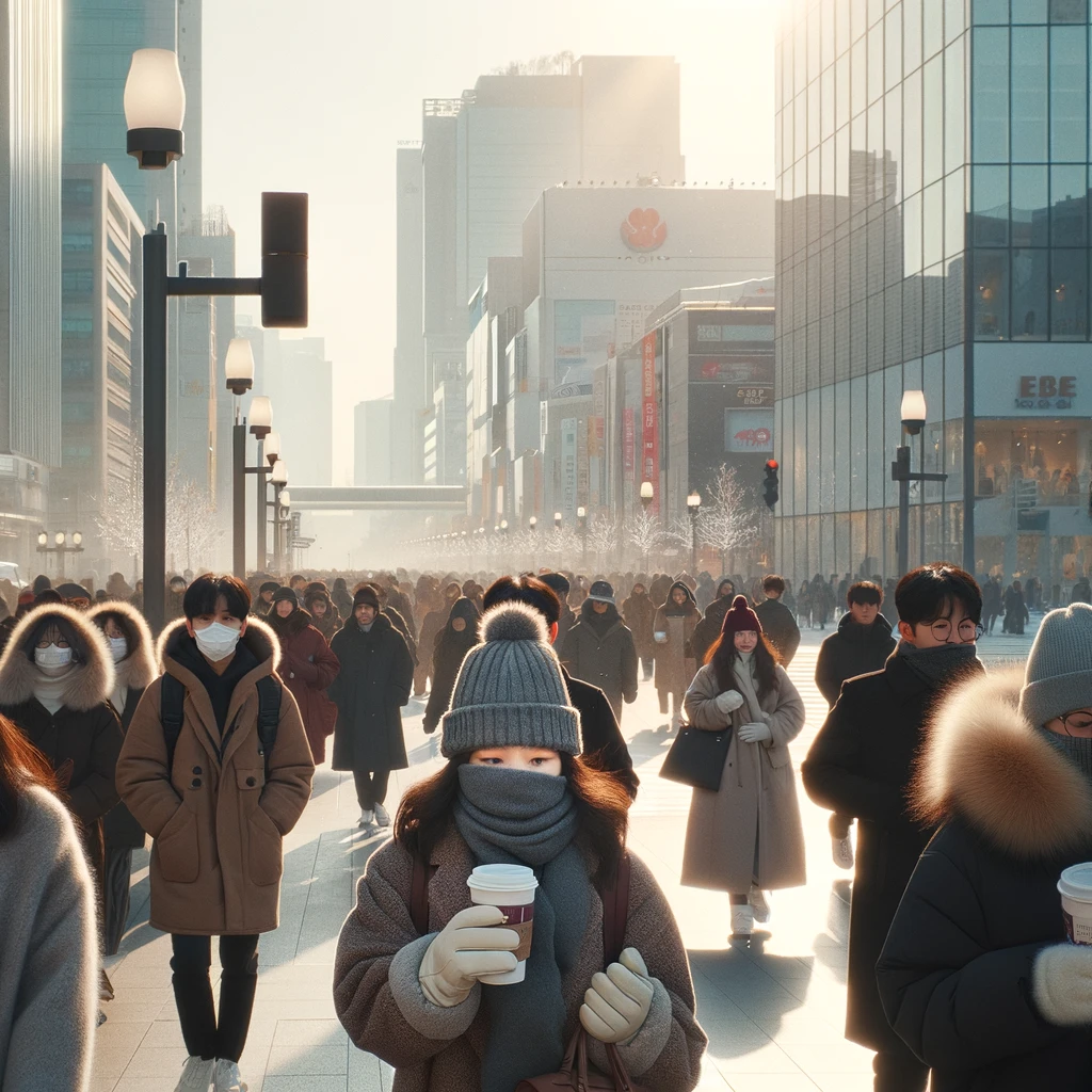 Daejeon and Daegu are also experiencing clear weather, with temperatures in Daegu around 36°F (about 2°C) and in Daejeon about 30°F (about -1°C), showing similar weather conditions. Preparing heavy winter clothing in these regions is also advisable, especially since temperatures can drop further in the mornings and evenings.