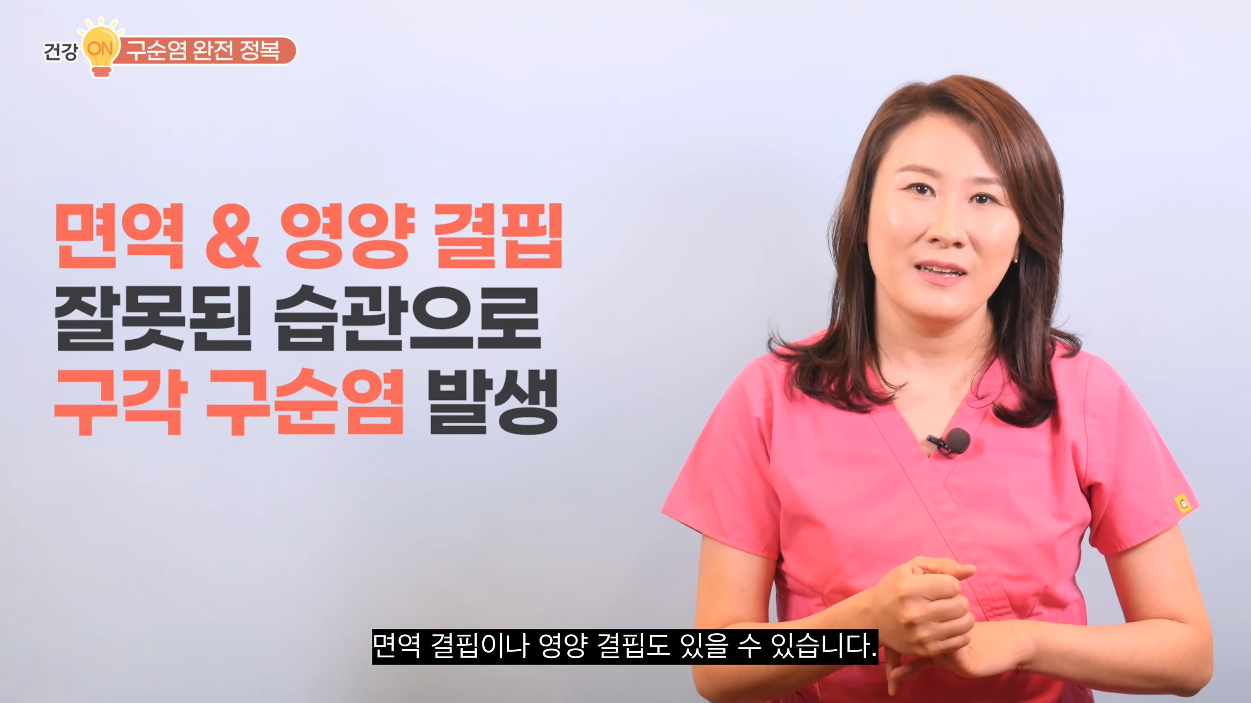 또한 구내염은 바이러스나 면역력 저하에 의해 생기는 경우가 많아 전신 컨디션과도 관련이 있습니다. 반면 구순염은 외부 자극이나 피부 자극성 화장품이 원인인 경우가 많습니다.