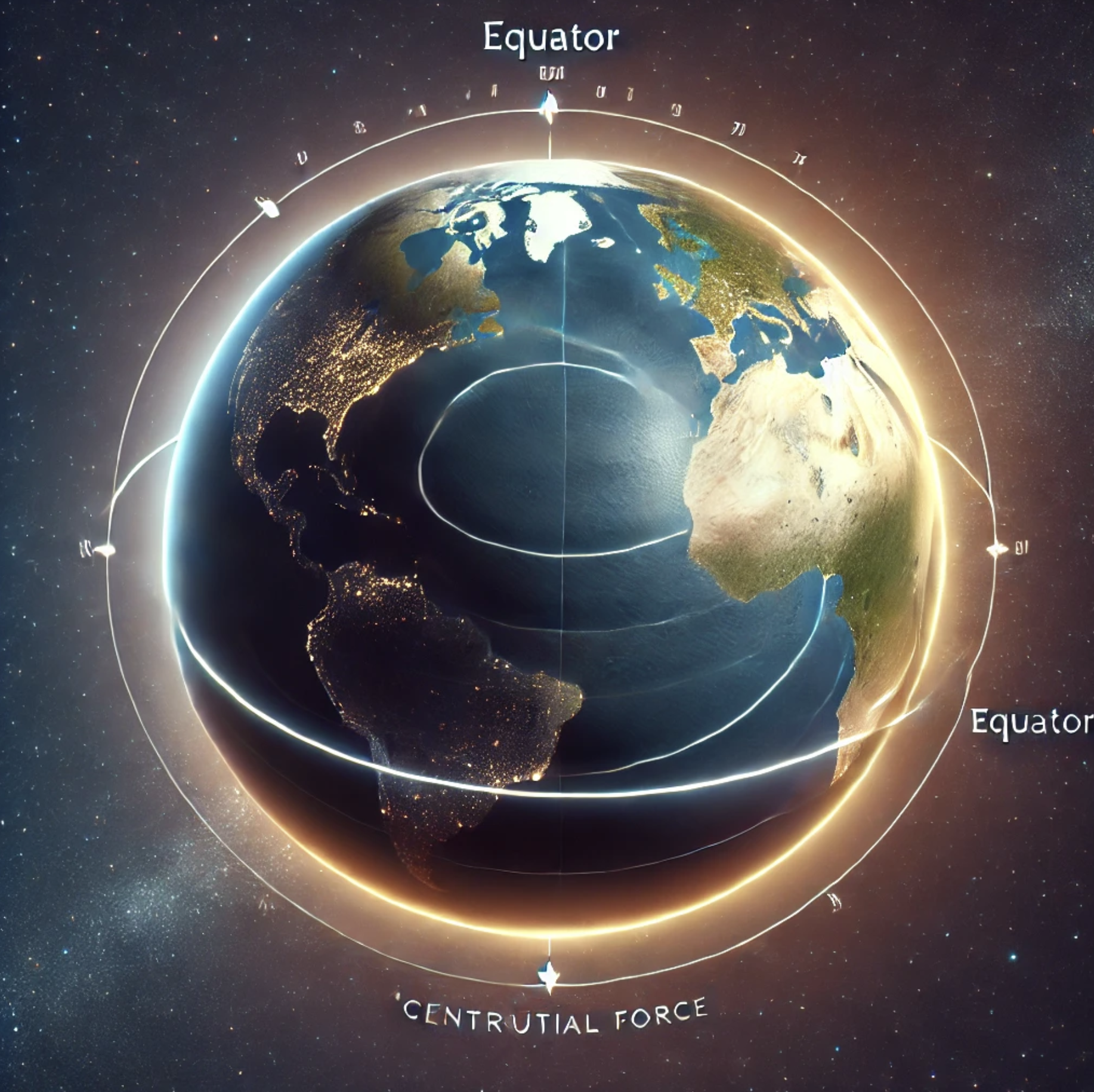 ✔ 자전으로 인한 원심력 → 지구가 회전하면서 적도 방향으로 퍼지는 힘이 작용