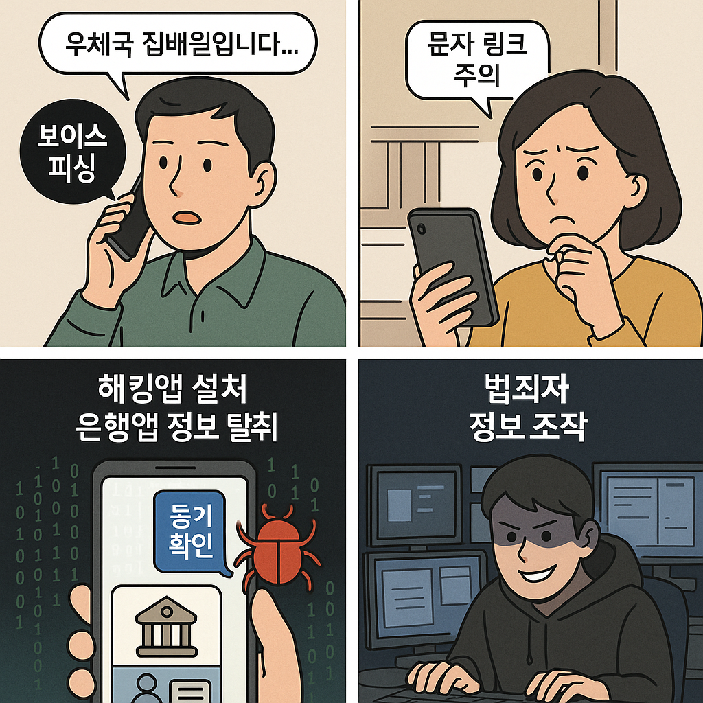 최근 급증하고 있는 ‘집배원 사칭 보이스피싱’은 등기우편이나 카드 배송을 가장해 믿음을 유도하고, 악성 앱 설치와 개인정보 탈취까지 이어지는 지능적인 범죄입니다.