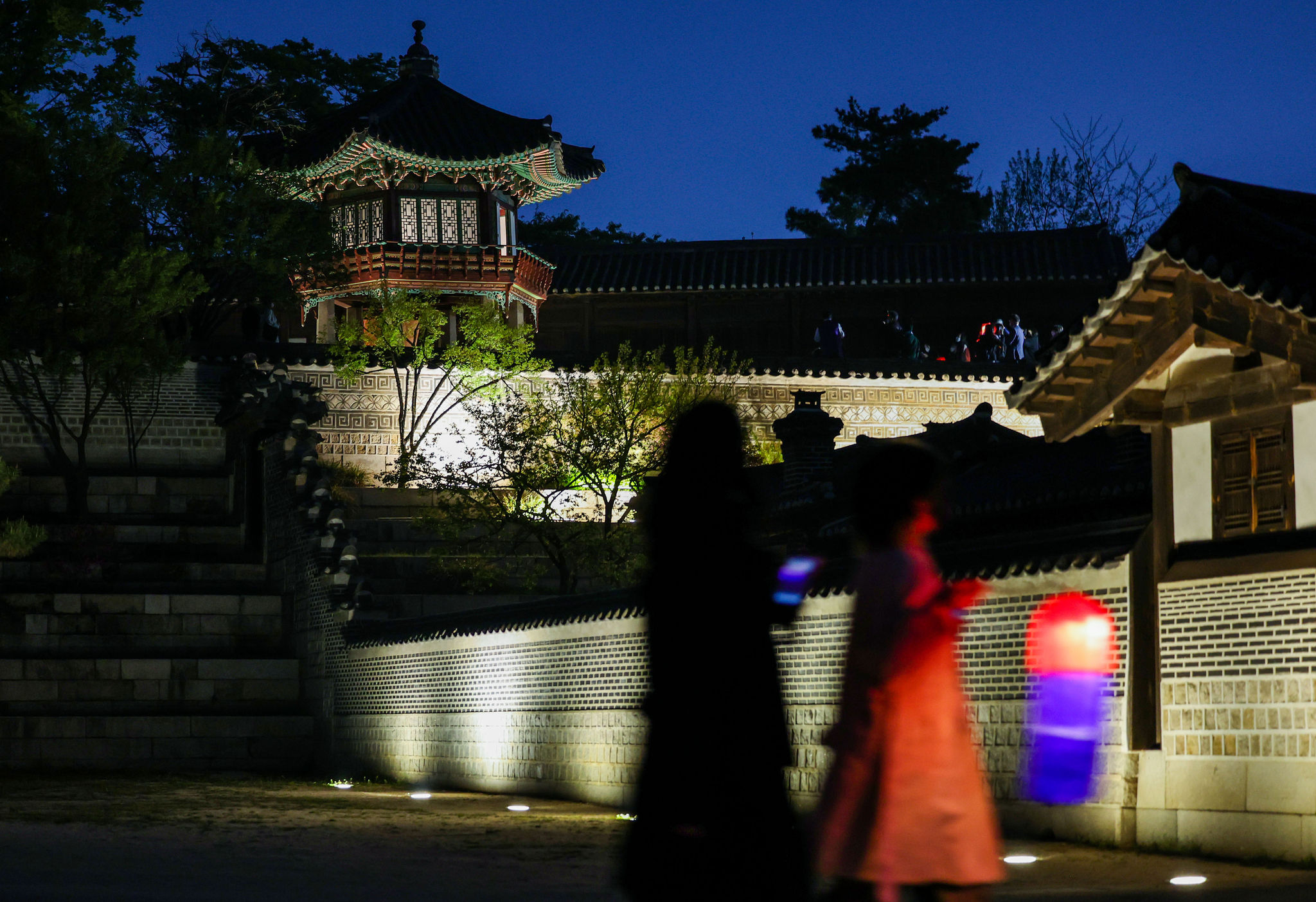 - 어두운 밤길을 따라 걸으며 고궁의 아름다움을 천천히 감상하세요.