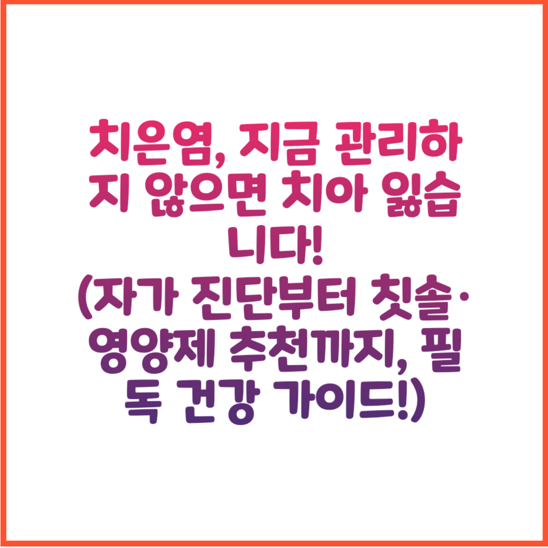 정확한 정보와 체계적인 가이드를 통해 건강한 잇몸을 유지하고 싶은 분들께 이 글이 확실한 해결책이 되기를 바랍니다.
