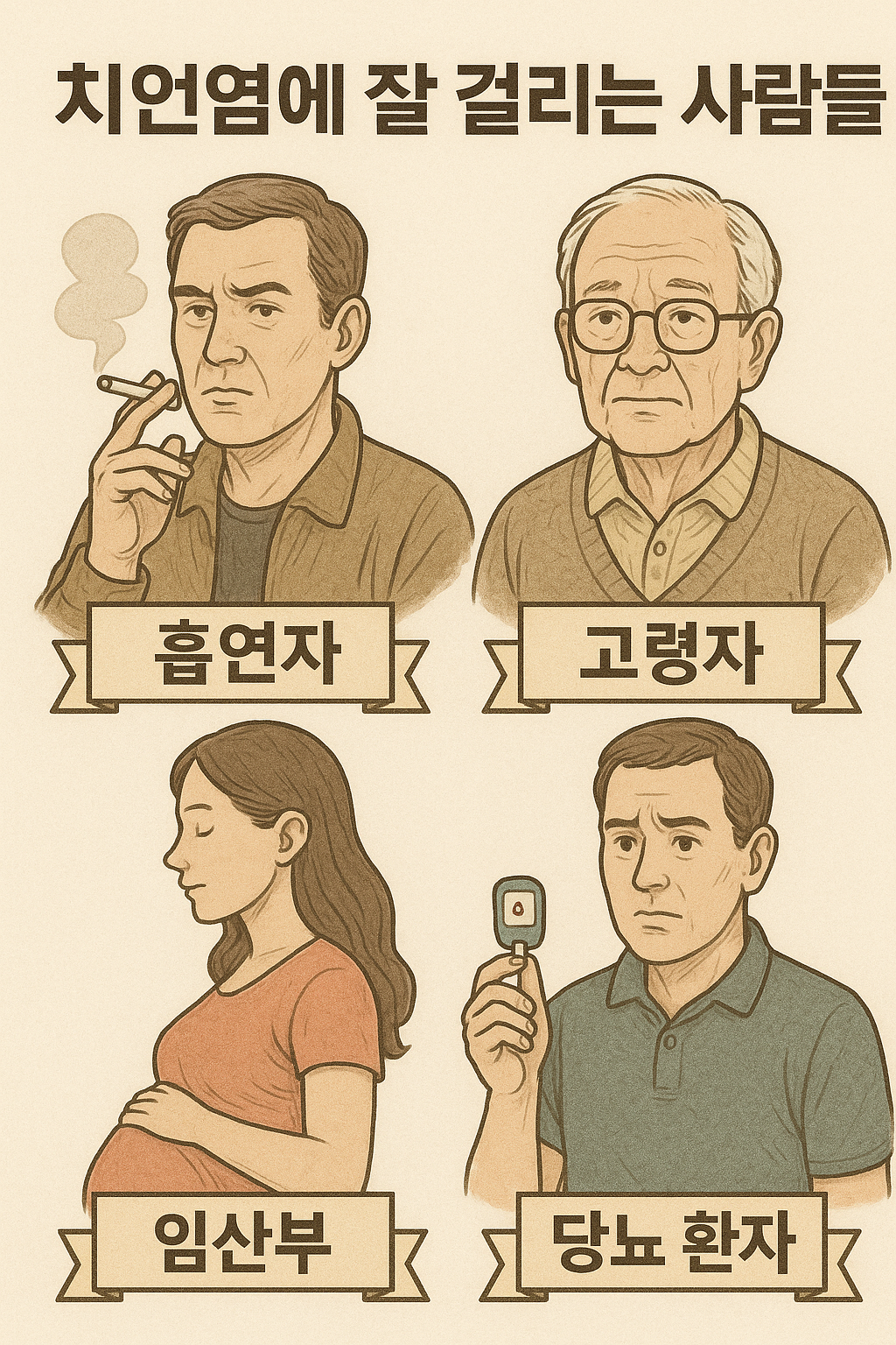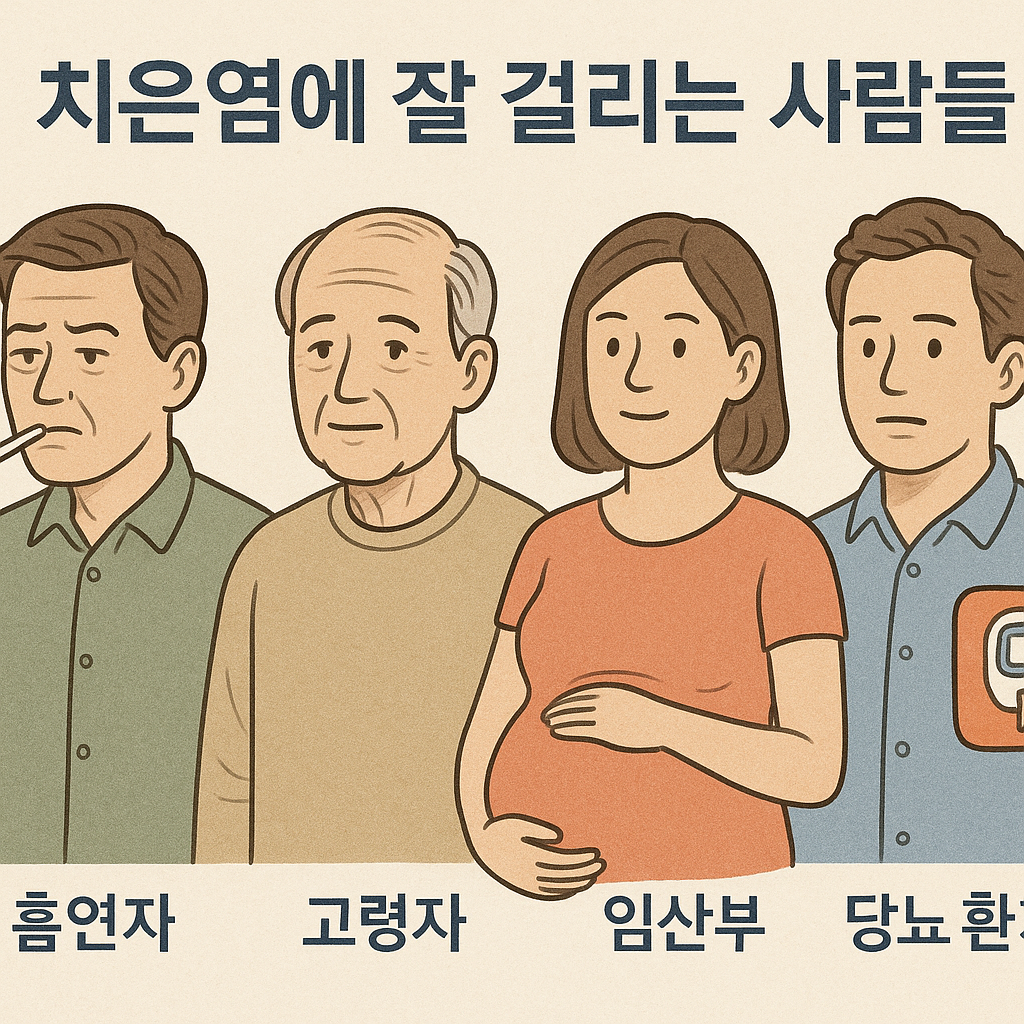 - 면역력이 약한 고령자: 나이가 들수록 잇몸 조직이 약해지고 면역력이 저하되며, 염증에 취약해집니다.