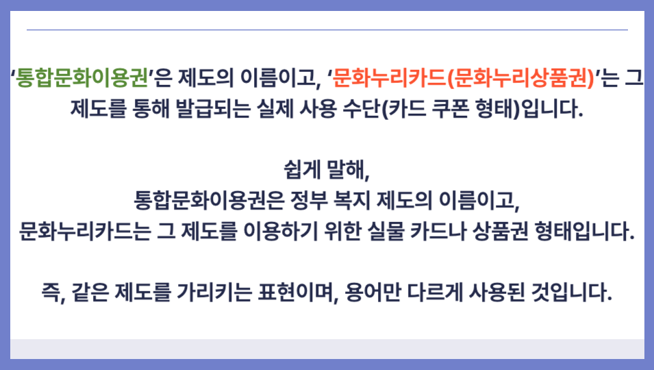 통합문화이용권은 문화 소외 계층에게 문화생활을 누릴 수 있도록 지원하는 정부의 복지 정책입니다.