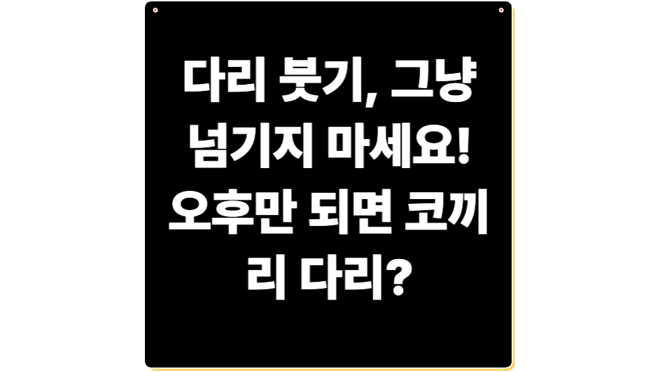 하루 일과를 마치고 집에 돌아오면, 신발이 꽉 끼고 다리가 무겁게 느껴지지는 않으셨나요? 아침엔 멀쩡하던 다리가 오후만 되면 코끼리 다리처럼 붓는다면 단순한 피로가 아니라 건강이 보내는 신호일 수 있습니다. 많은 여성들이 겪고 있지만 대수롭지 않게 넘기는 다리 부종, 원인을 정확히 알고 일상 속에서 개선할 수 있는 방법을 실천해보세요. 이 글에서는 다리 부종의 주요 원인부터 생활 속 관리법, 꼭 알아야 할 질병 신호까지 꼼꼼하게 안내해드립니다. 지금 바로 다리 건강을 위한 첫걸음을 시작해보세요!
