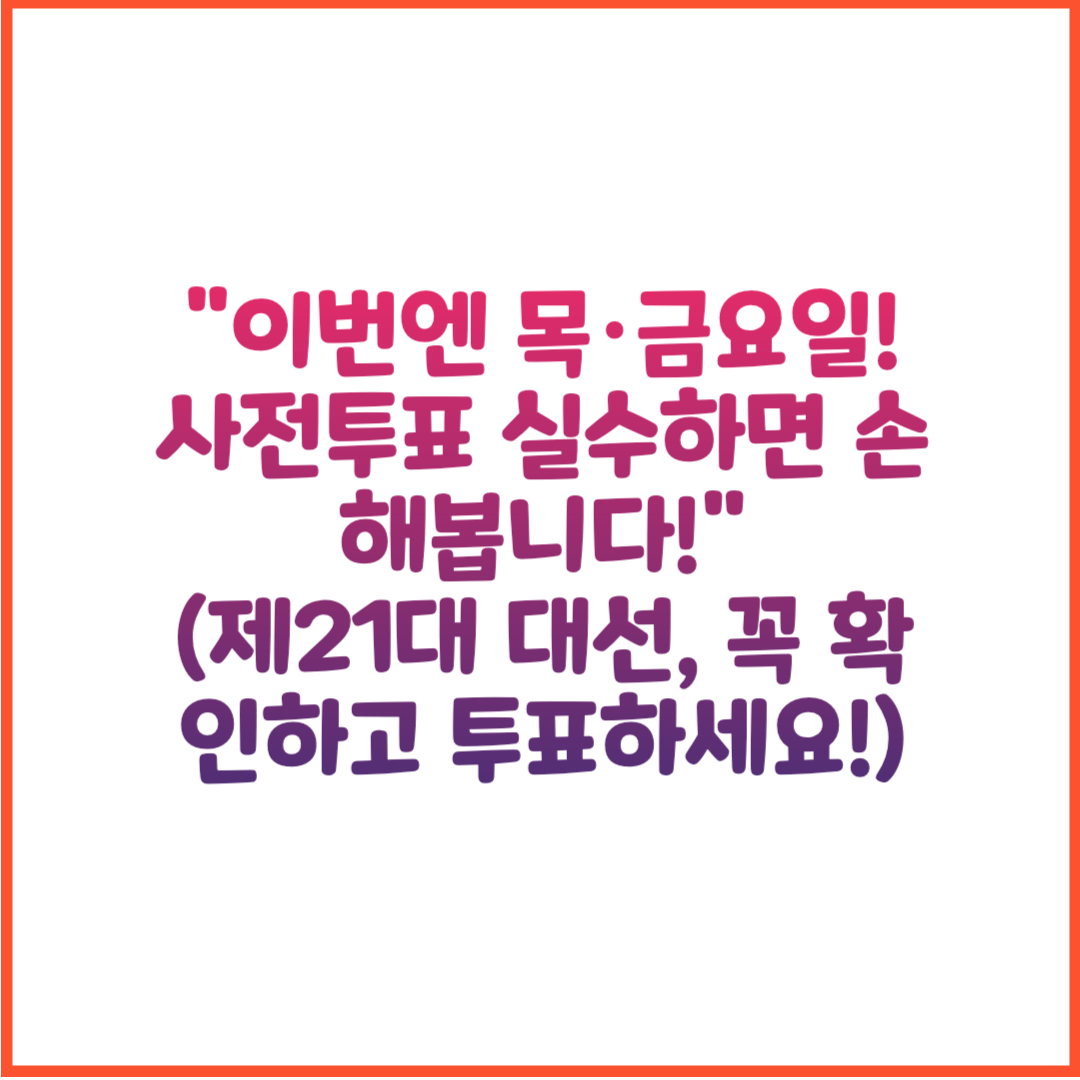 이번에는 토요일이 아닌 목요일과 금요일 이틀간 진행되기 때문에 사전투표 일정을 반드시 확인하시고, 혼선 없이 참여하시기 바랍니다.