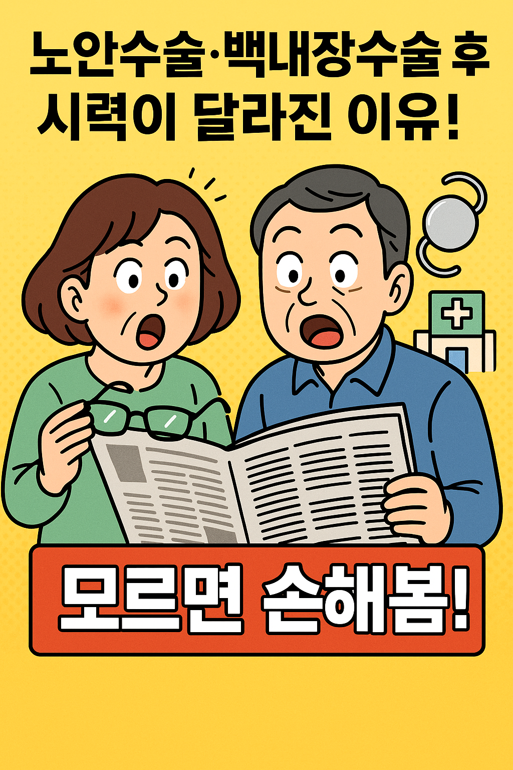 어떤 병원은 “노안수술로 다초점 시력 완성!”이라고 말하고, 또 어떤 병원은 “백내장수술로 노안까지 잡는다!”라고 홍보하죠. 이쯤 되면 사람 머릿속은 더 흐릿해집니다.