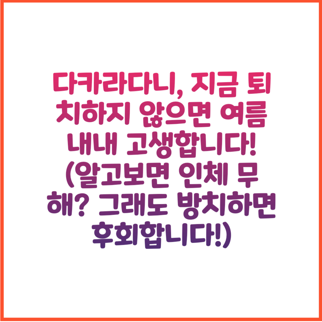 이 글이 다카라다니로 인해 불편을 겪고 있는 분들에게 실질적인 도움이 되셨기를 바랍니다. 추후에는 다카라다니 퇴치 제품 비교 및 추천 콘텐츠도 다룰 예정이니 많은 관심 부탁드립니다.