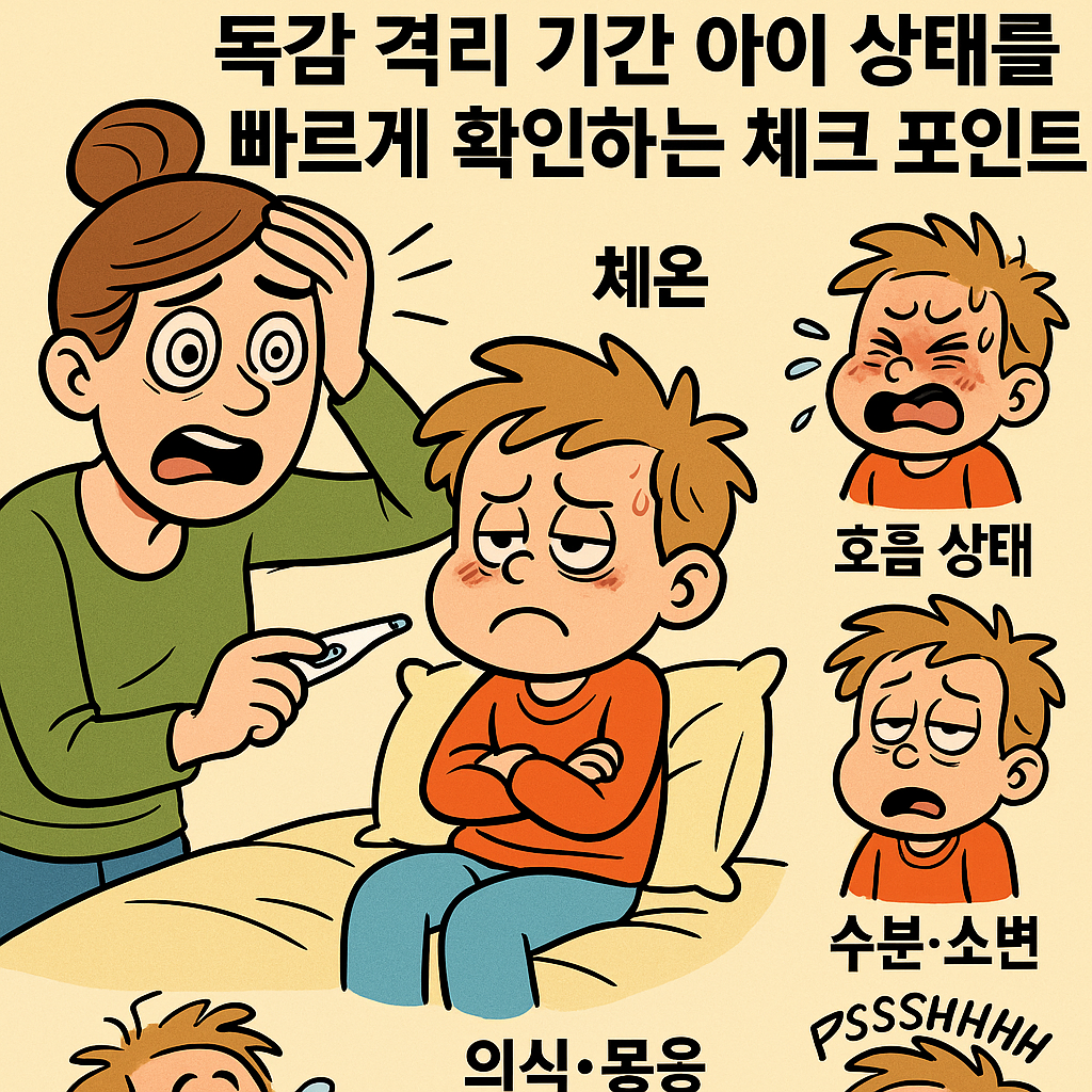 독감 격리 기간에는 아이 상태를 “감으로” 보지 마시고, 몇 가지 기준을 정해서 반복적으로 확인해 주시는 것이 중요합니다.