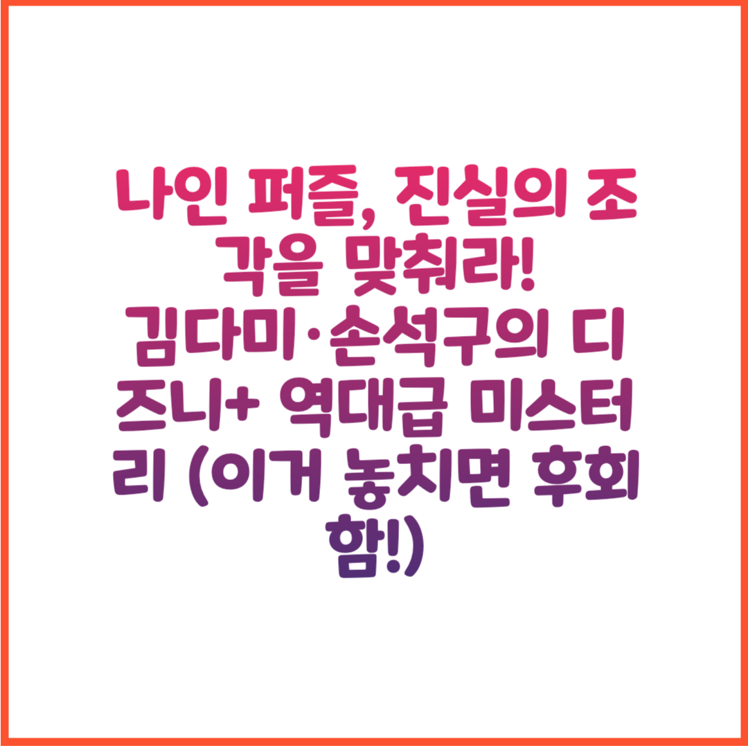 최근 디즈니플러스에서 새롭게 공개된 오리지널 시리즈 ‘나인 퍼즐’이 스릴러 장르 팬들의 뜨거운 관심을 받고 있습니다. 김다미와 손석구라는 강렬한 조합, 그리고 윤종빈 감독의 연출이 더해진 이 작품은 단순한 범죄 추리극을 넘어 기억과 심리, 인간 관계에 대한 깊이 있는 메시지를 전하며 매 회차 시청자들의 몰입도를 끌어올리고 있습니다. ‘나인 퍼즐’의 전체적인 줄거리부터 등장인물, 회차 구성, 관전 포인트까지 궁금하신 분들이 많을 텐데요. 이 글에서는 작품에 대한 모든 정보를 한눈에 보기 쉽게 정리해드리며, 첫 시청 전 궁금했던 요소들을 해소해드리고자 합니다.