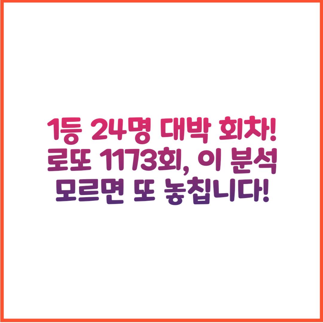 매주 수많은 사람들의 기대와 설렘 속에 발표되는 로또 당첨번호, 이번 제1173회 로또는 특히 1등 당첨자가 24명이나 되는 이례적인 결과로 많은 주목을 받고 있습니다. 본 포스팅에서는 1173회 로또의 당첨번호는 물론, 당첨자 수, 당첨금액, 당첨지역, 그리고 구매 방식까지 꼼꼼히 분석해드립니다. 또한 자동과 수동 중 어떤 방식이 유리했는지, 인터넷 구매가 실제로 얼마나 당첨에 유리했는지도 자세히 살펴보았습니다.