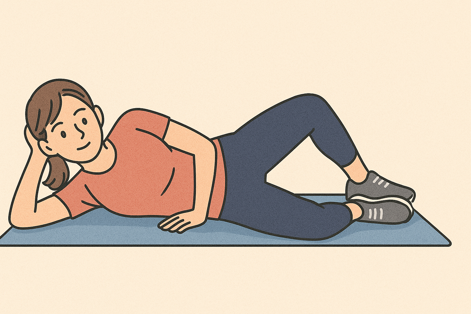 다리를 교차한 상태로 옆으로 숙이거나, 앉은 자세에서 한쪽 다리를 반대쪽 무릎 위에 올려 엉덩이 바깥쪽 근육을 스트레칭합니다.