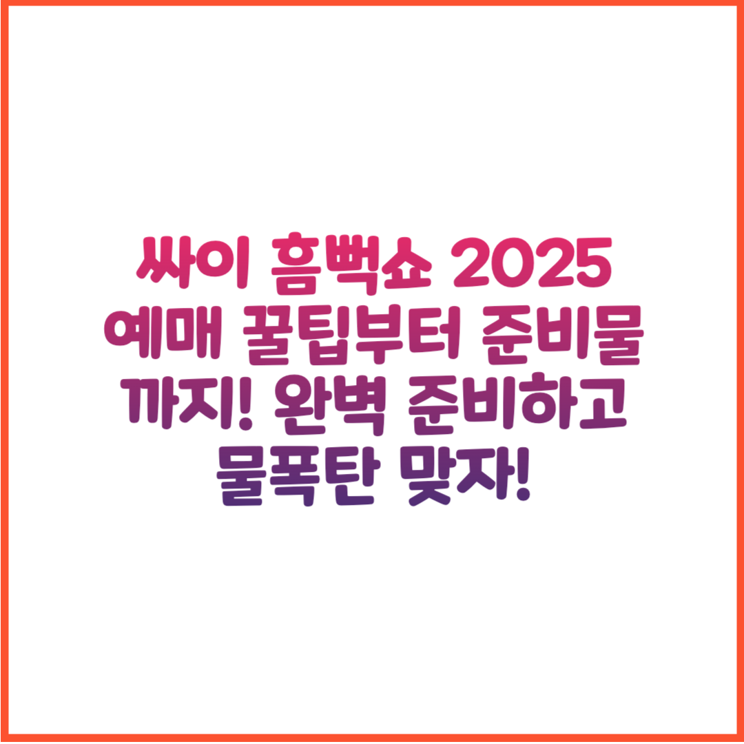 매년 여름을 뜨겁게 달구는 싸이의 대표 공연, 흠뻑쇼가 2025년에도 어김없이 돌아왔습니다. 무더운 날씨 속에서도 관객들에게 시원한 물세례와 열정 가득한 퍼포먼스를 선사하며, ‘공연 이상의 축제’라는 명성을 이어가고 있는 싸이 흠뻑쇼! 이번 포스팅에서는 2025 흠뻑쇼의 전국 투어 일정, 티켓 예매 방법, 좌석 추천, 드레스코드, 그리고 공연 관람을 위한 필수 준비물까지 한눈에 확인할 수 있도록 꼼꼼하게 정리했습니다. 치열한 티켓팅 경쟁에서 성공하고, 누구보다 멋지고 편안하게 공연을 즐기기 위해 꼭 필요한 정보들을 지금 바로 확인해보세요!