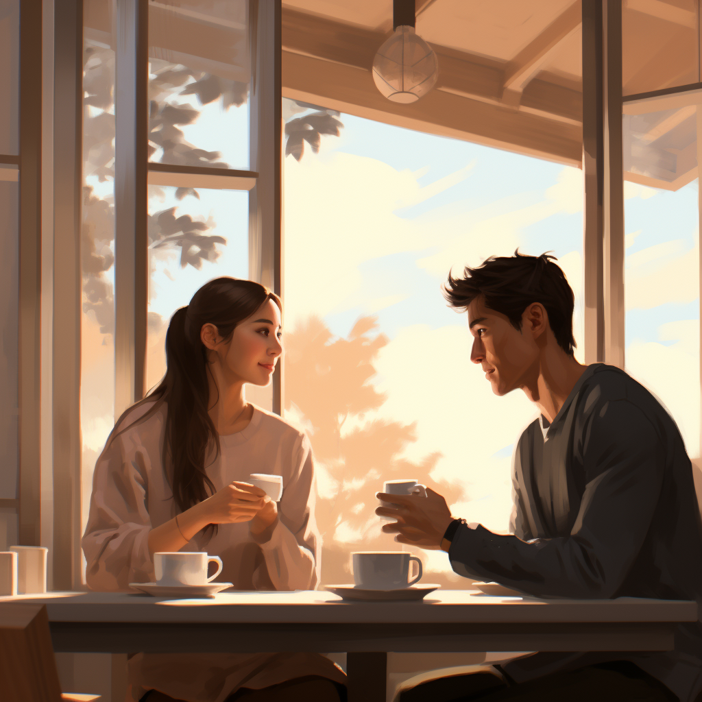Alex sat at the dining table early in the morning, sipping his coffee. The house was silent, but Young Kim, his wife, let out a soft chuckle from the kitchen. Sitting beside Alex, sipping her coffee, she asked, "What kind of day do you think today will be?" Pondering momentarily, Alex replied, "The weather's nice, so maybe we should go out. Or perhaps watch a movie at home?" They exchanged simple morning banter to kick off their day.