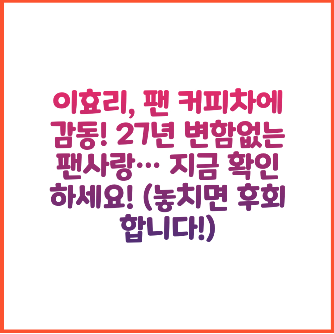 이효리와 팬들이 함께 만들어가는 27년의 시간은 단순한 스타와 팬의 관계를 넘어선 하나의 아름다운 이야기입니다. 팬들의 커피차 선물에 진심으로 감사를 표하고 현장에서 인증샷을 남긴 이효리의 모습은 오랜 시간 이어진 신뢰와 애정을 고스란히 보여주고 있습니다. 앞으로 방송될 ‘저스트 메이크업’에서의 활약도 기대를 모으는 가운데, 그녀의 새로운 도전과 팬들과의 따뜻한 교감은 계속될 것입니다. 변함없이 사랑을 나누는 이효리의 행보가 궁금하다면, 이 블로그에서 그 진심을 함께 느껴보시길 바랍니다.