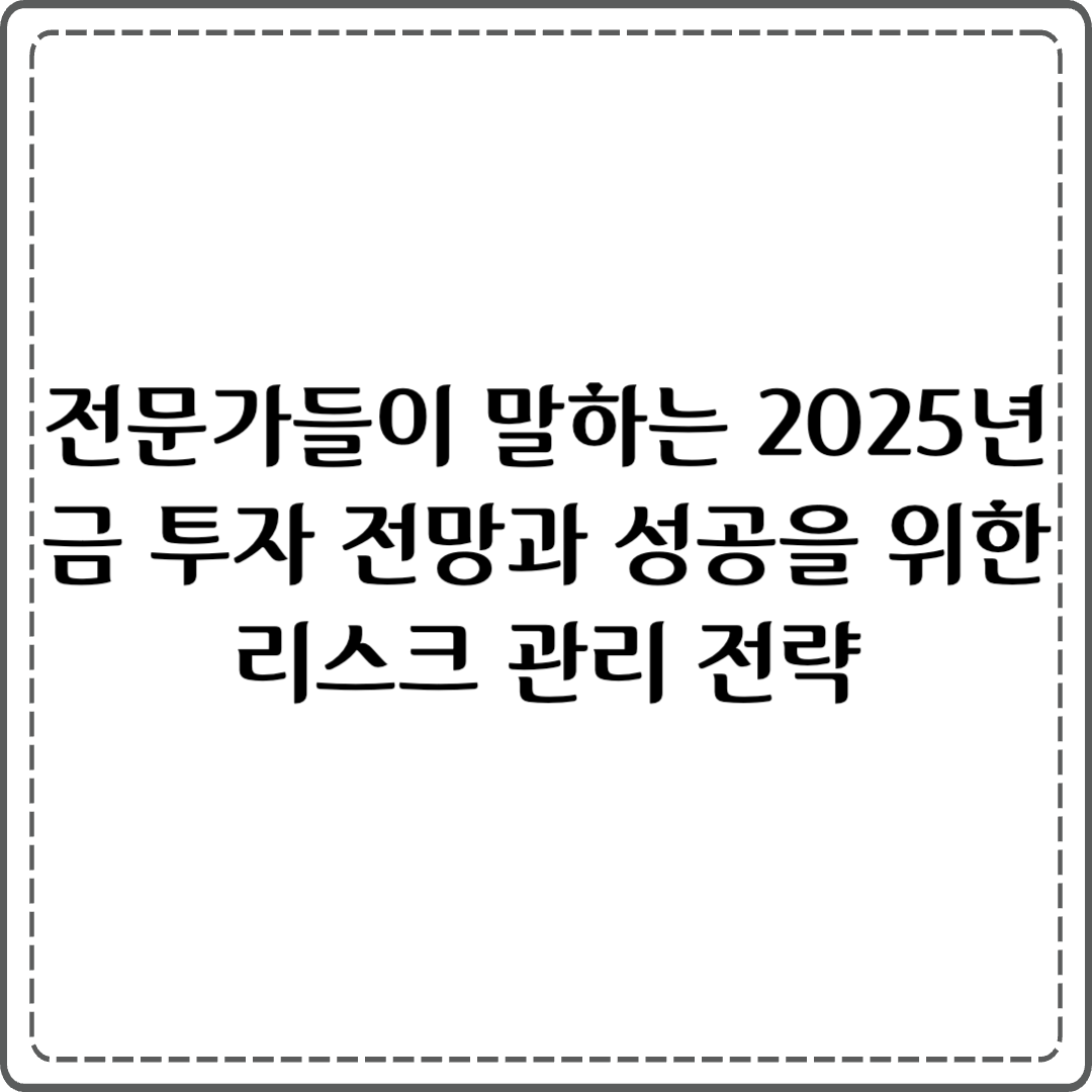 전문가들이 말하는 2025년 금 투자 전망과 성공을 위한 리스크 관리 전략