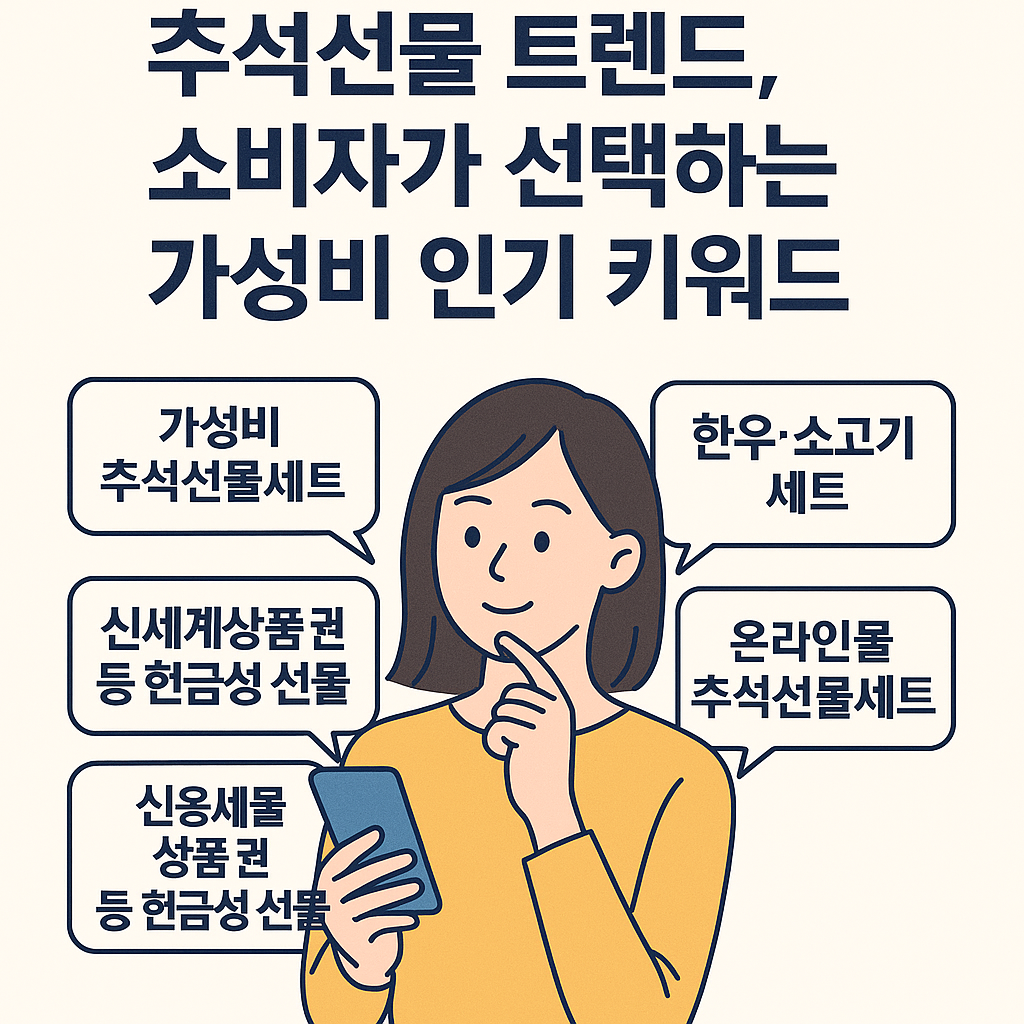 추석 명절이 다가올수록 소비자들의 가장 큰 관심은 “예산 안에서 얼마나 만족스러운 선물을 준비할 수 있느냐”입니다. 최근 검색 데이터와 구매 패턴을 보면 “가성비”와 “실속형”이 핵심 키워드로 자리 잡고 있습니다.