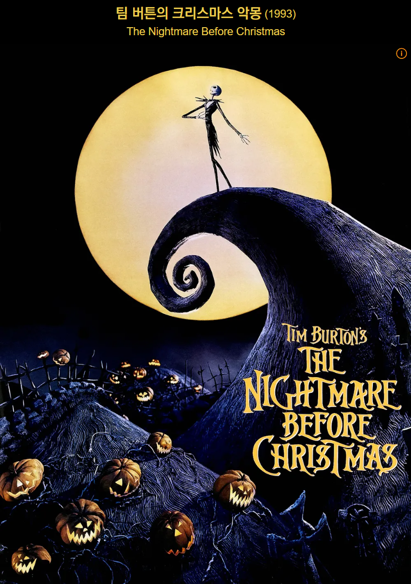 이 영화는 흔히 팀 버튼의 "크리스마스의 악몽"으로 홍보되며, 1993년에 개봉되었고 헨리 셀릭이 감독했습니다. 팀 버튼은 이 영화를 제작하고 공동 작성했으며, 대니 엘프만이 음악을 작곡했습니다.