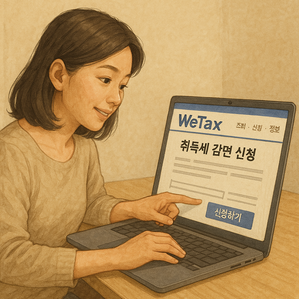- 온라인: 위택스(WeTAX)를 통해 취득세 감면 신청이 가능합니다. 부동산 취득세 신고 단계에서 ‘감면대상’ 여부를 선택하고 관련 서류를 첨부하면 됩니다.