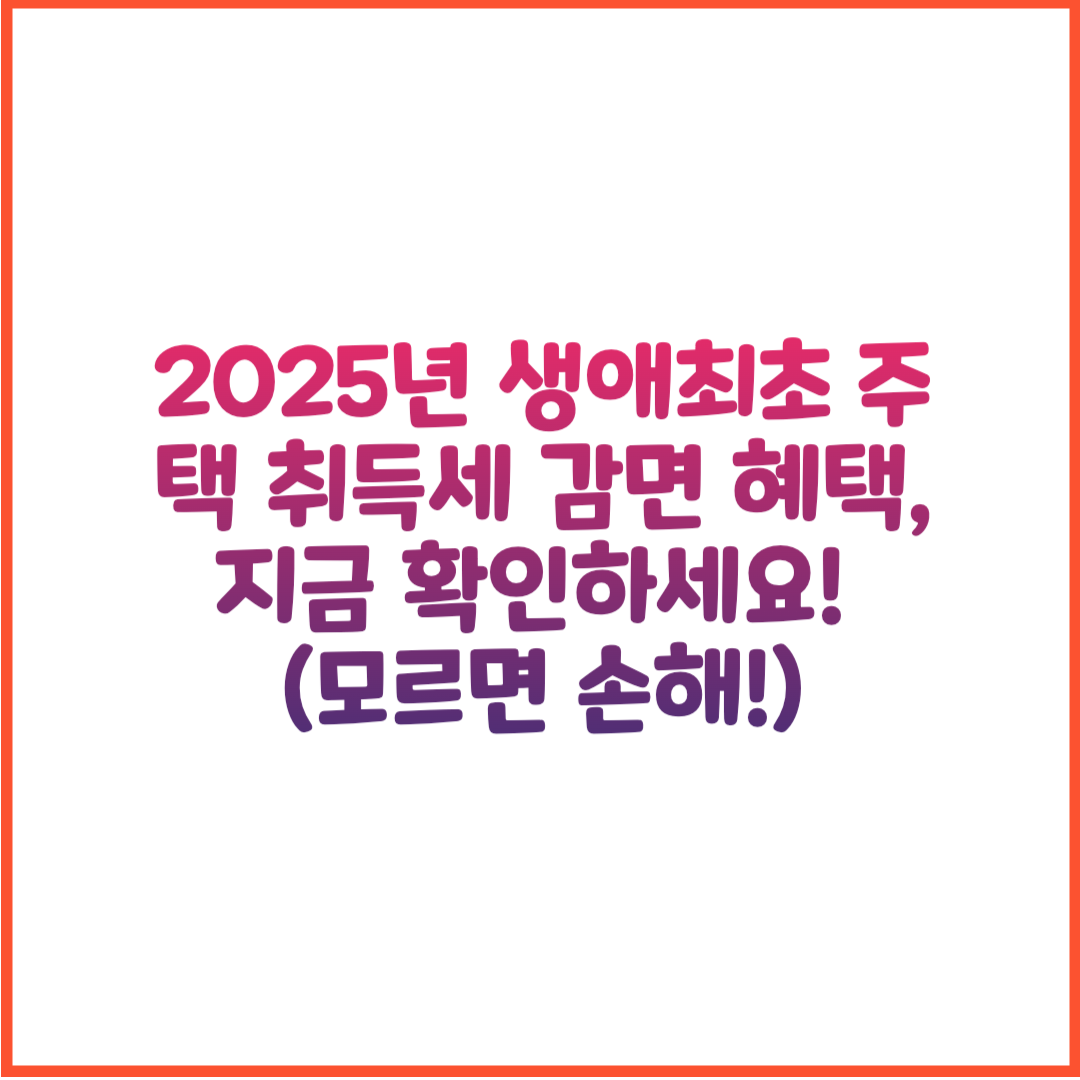 생애최초로 내 집을 마련하는 순간은 누구에게나 인생의 큰 전환점입니다. 특히 2025년부터 달라진 정부의 세금 혜택은 첫 집 구매자에게 상당한 경제적 부담을 덜어주는 중요한 요소입니다. 자 그러면 시작해볼가요?