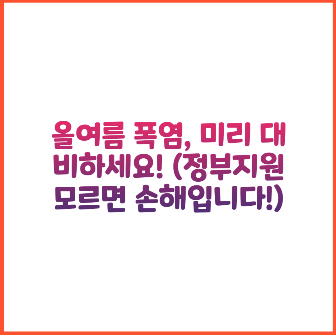 여름철 필수 정보와 정부 지원 제도를 꼭 챙기시고, 무더위와 집중호우로부터 안전하고 건강한 여름을 보내시기 바랍니다.