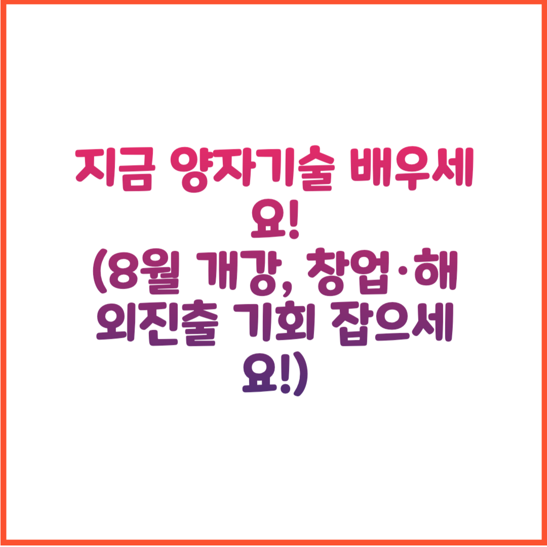4차 산업혁명 시대, 기술의 판을 바꾸는 양자기술. 이 기술을 단순히 뉴스로만 접하던 시대는 끝났습니다. 지금 서울시는 KIST와 손잡고 실제 산업 적용이 가능한 양자기술 인재를 양성하고 있습니다. 특히 창업과 글로벌 진출까지 연계된 실무형 교육 프로그램인 2025 서울퀀텀캠퍼스 산업전문과정은 양자컴퓨팅과 양자통신 분야에서 진짜 성장을 원하는 분들에게 반드시 필요한 기회입니다. 이번 포스팅에서는 누구를 위한 과정인지, 어떤 교육을 받을 수 있는지, 어떤 혜택이 뒤따르는지 아주 자세히 알려드립니다. 지금 이 글을 통해, 미래 기술의 흐름에 탑승해 보세요.