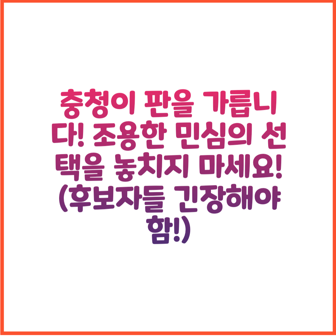 선거는 단 하루에 끝나지만, 그 영향은 앞으로의 수년간 지속됩니다. 충청 유권자들의 깊이 있는 통찰과 책임 있는 선택이 대한민국의 미래를 더욱 건강하게 만들어 줄 것입니다.